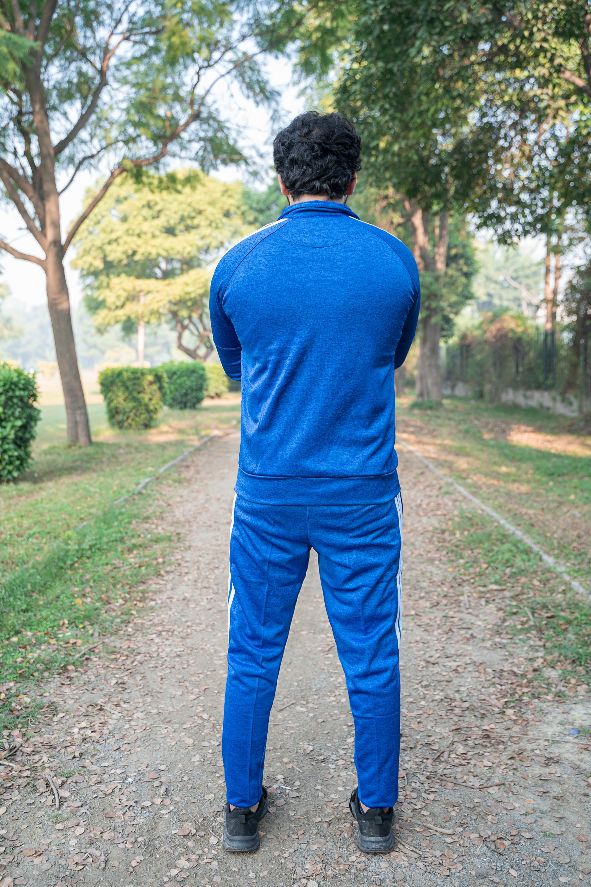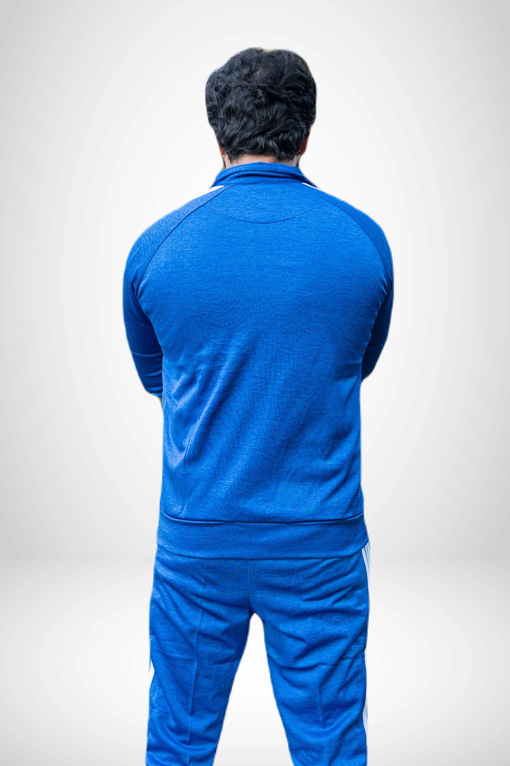 Designed for active lifestyles, this stretchable ensemble features Comfort Flex technology for optimal body stretch. The slim-fit design, enhanced by a standing collar, is crafted from heavy-stretch poly athletic fabric for maximum comfort and flexibility. The classic track jacket and trouser combination is equipped with front pockets, ribbed cuffs, and hem, creating a stylish yet functional look.