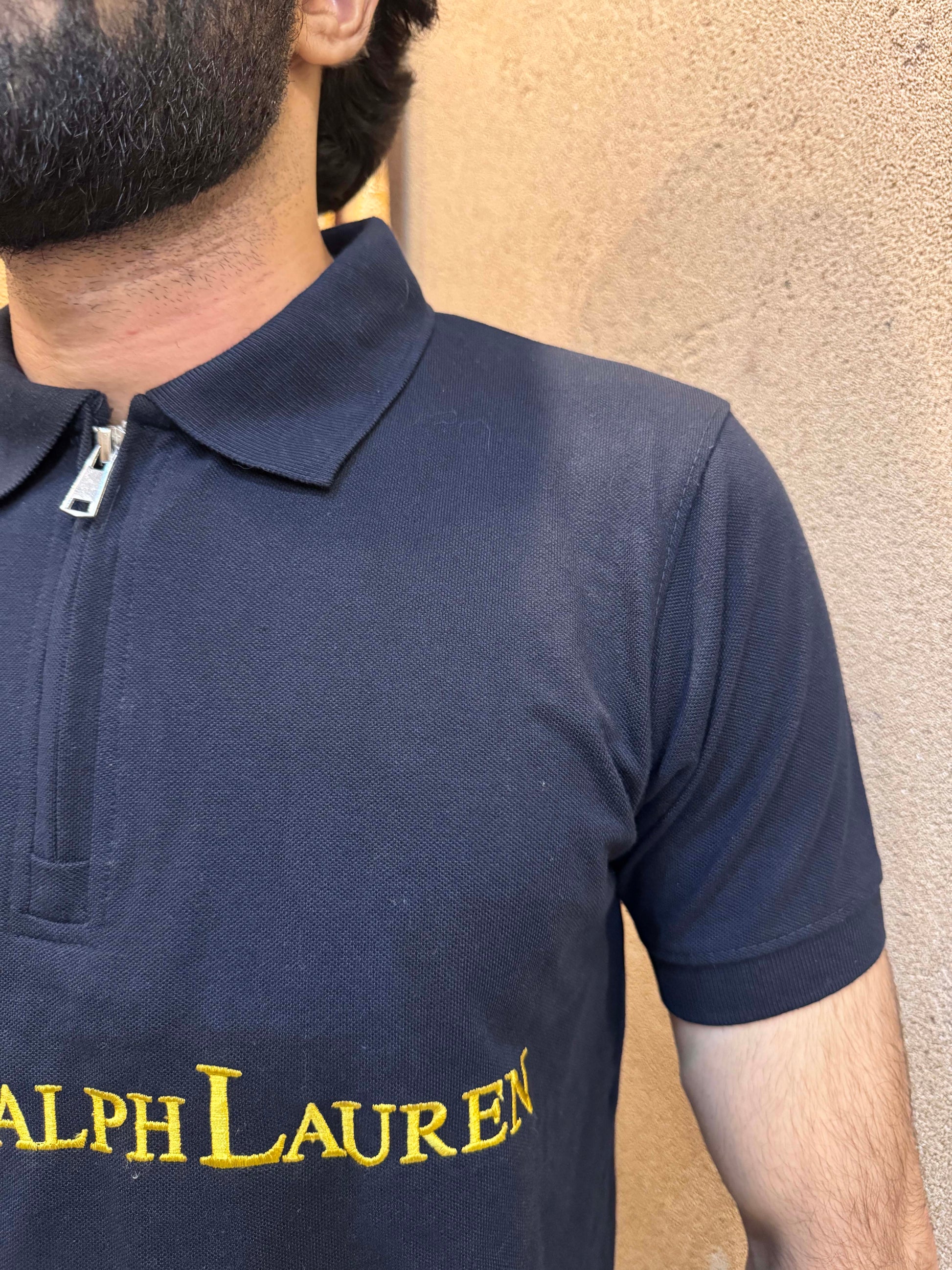 Men's Zipper Polo Shirt Black