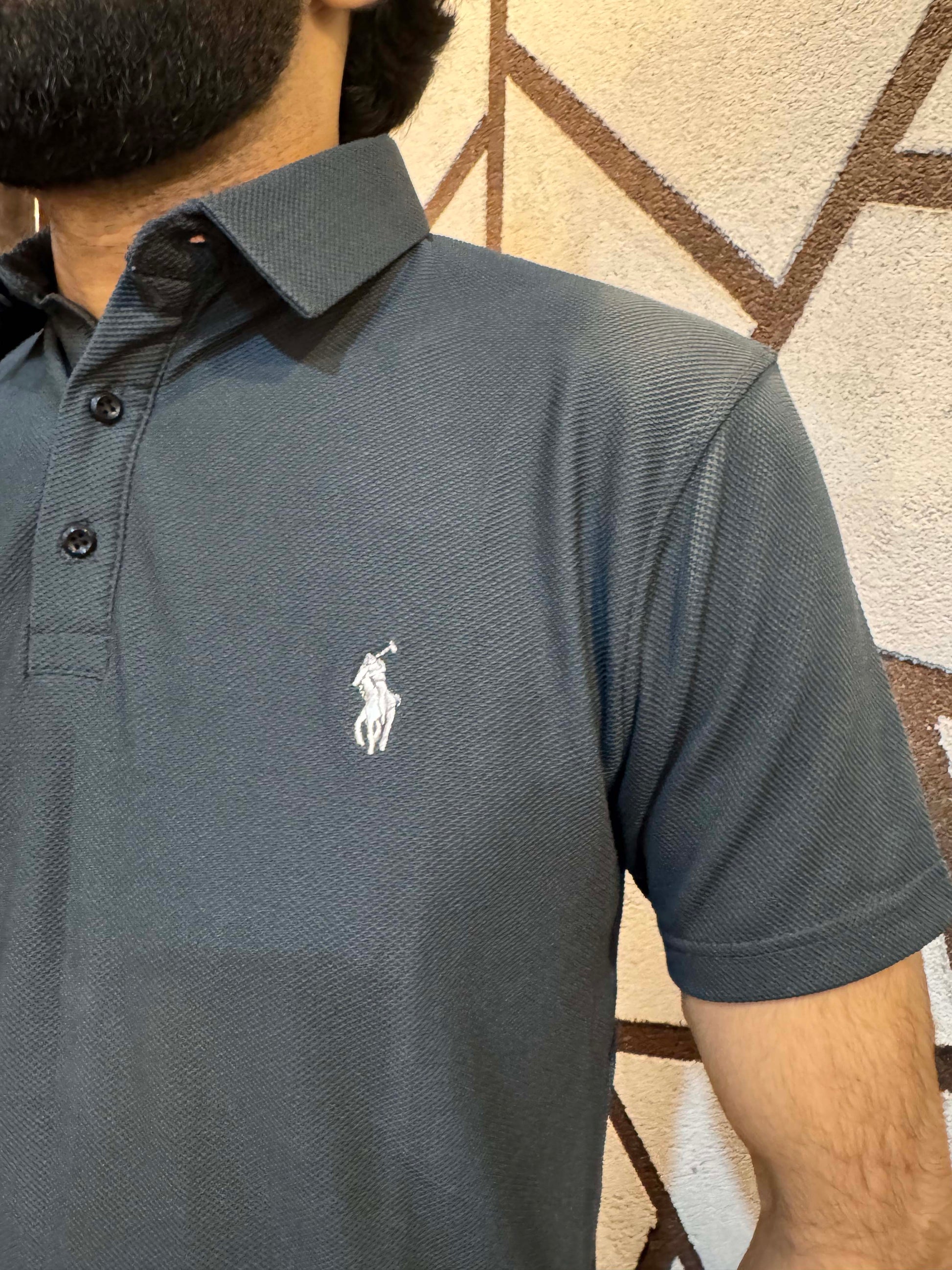 Men's Popcorn Texture Polo Shirt Grey