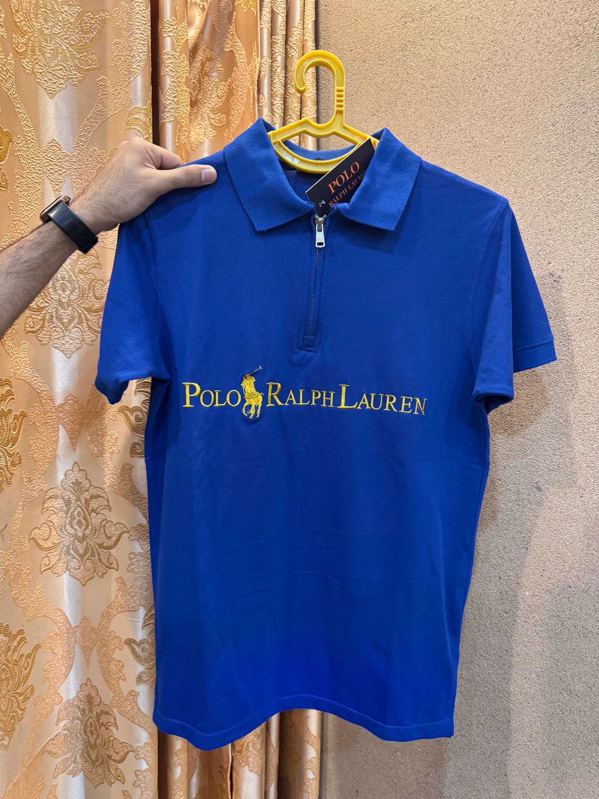 Men's Zipper Polo Shirt Blue